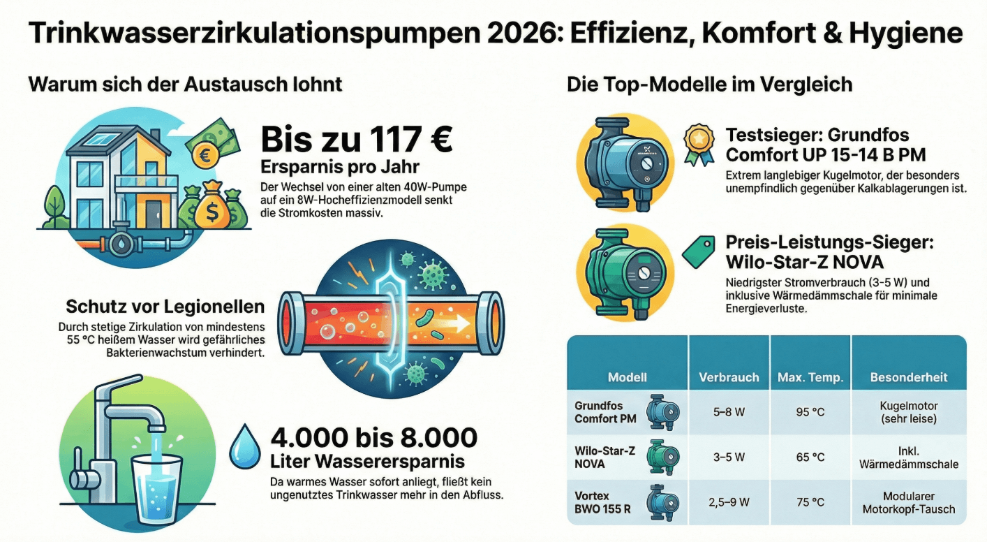 Trinkwasserzirkulationspumpe Test 2026: Die 7 besten Modelle im Vergleich